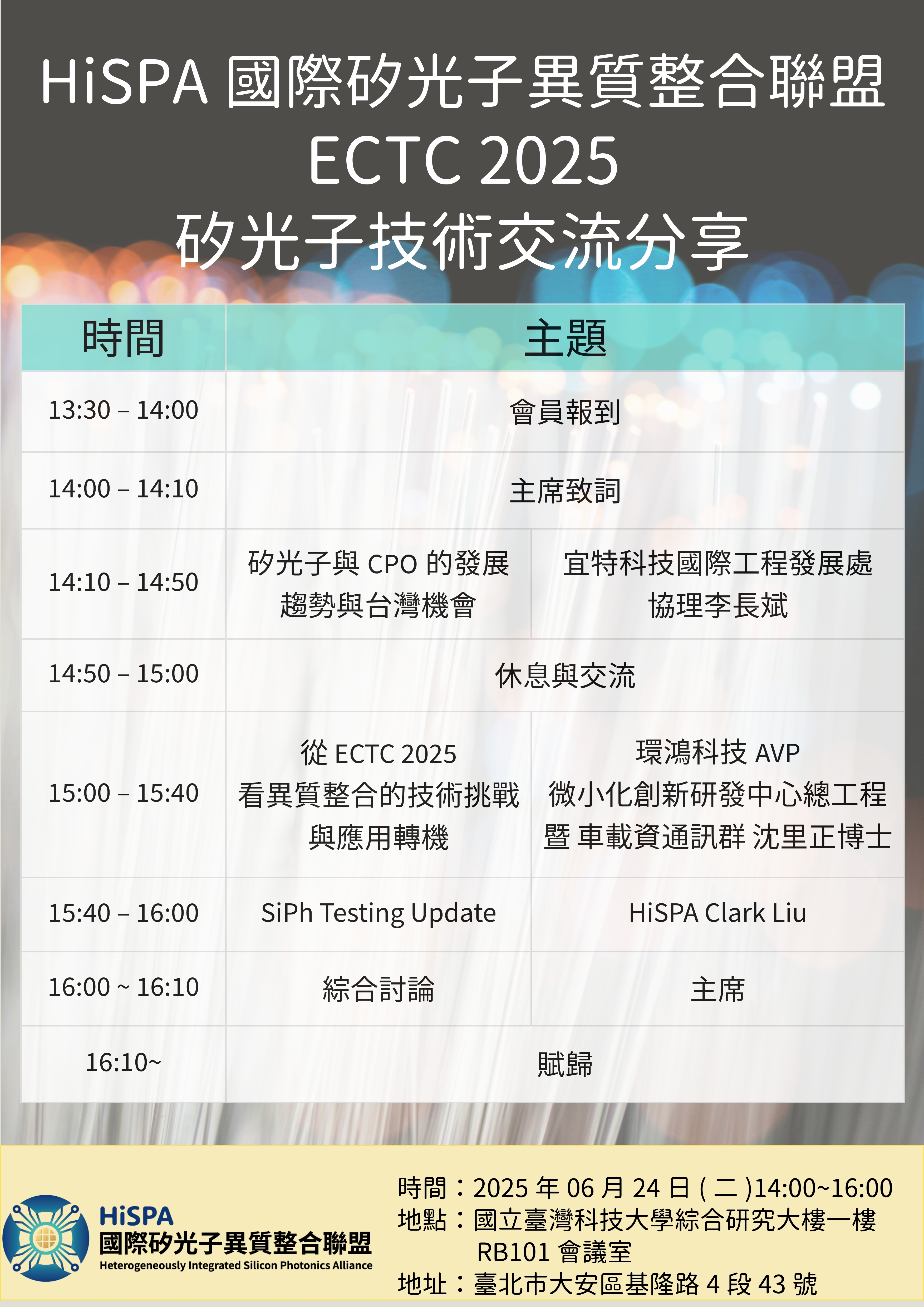 【活動通知】ECTC 2025矽光子技術交流分享 06/24